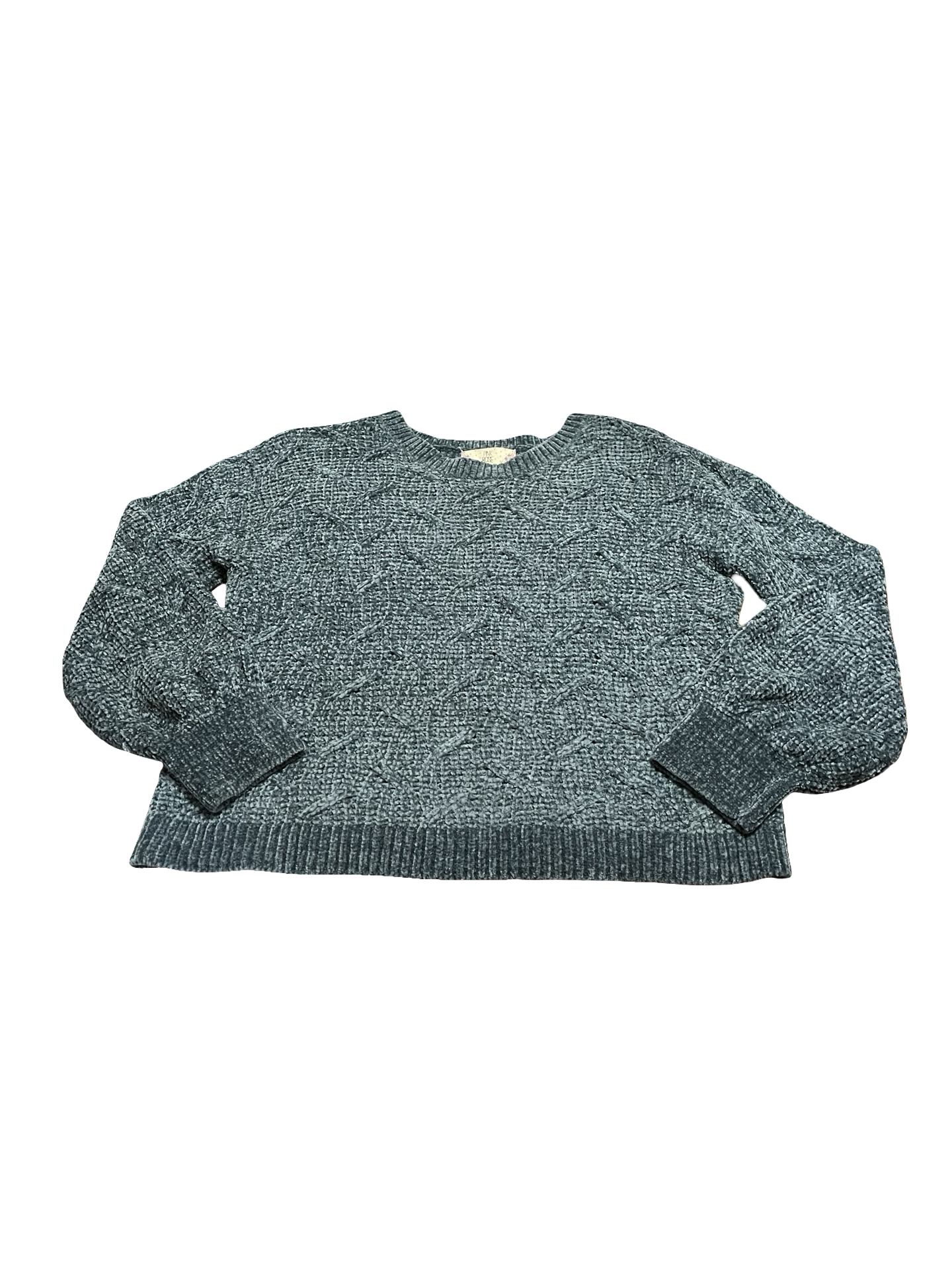 PINK ROSE Teal Chenille Cable Knit Sweater Size L EUC